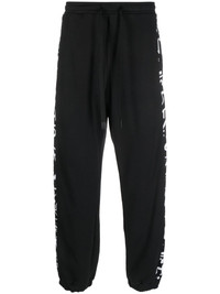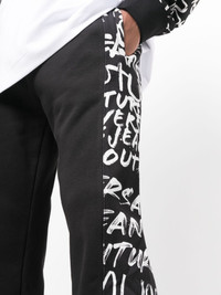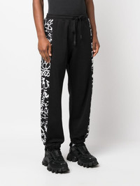 stripe-detail drawstring track pants Highlights - Black - Cotton - Side stripe detailing - Graffiti print - Elasticated drawstring waistband - Tapered leg - Elasticated ankles - Two side slit pockets Made in Italy Composition Lining: Cotton 100% Outer: Cotton 100% SIZE & FIT Model measurements Height 6 ft 1 in(1.85 m) Bust/Chest 38.58 in(98 cm) Hips 37 in(94 cm) Waist 30.31 in(77 cm) FittingInformation Designed for a relaxed tapered leg, allowing a comfortable loose fit above the knee with a closer fit towards the calves The ribbed hem at the ankle offers a close, comfortable fit Made from a midweight non-stretch fabric, this piece offers minimal elasticity when worn This piece fits true to size – take your usual size Washing instructions Machine Wash