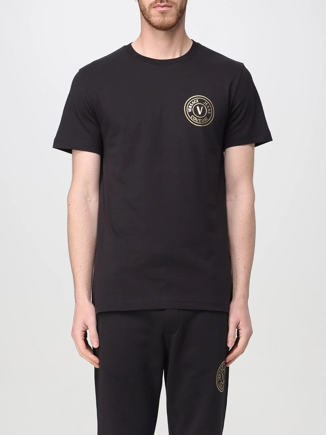 DESCRIPTION - Style: Classic - Model: Crewneck - Neckline: Crewneck - Shoulders: Regular - Sleeves: Short - Bottom: With straight hemline - Materials: Cotton - Pattern: Plain-colored DETAILS AND CARE Composition 100% CO SIZE AND FIT Sizes not available Size and fit Slim fit Designer code: 78GAIT00CF01T G89 Giglio Code: G77473 Designer: Versace Jeans Couture Collection: Versace Jeans Couture Men Category: Clothing Versace Jeans Couture