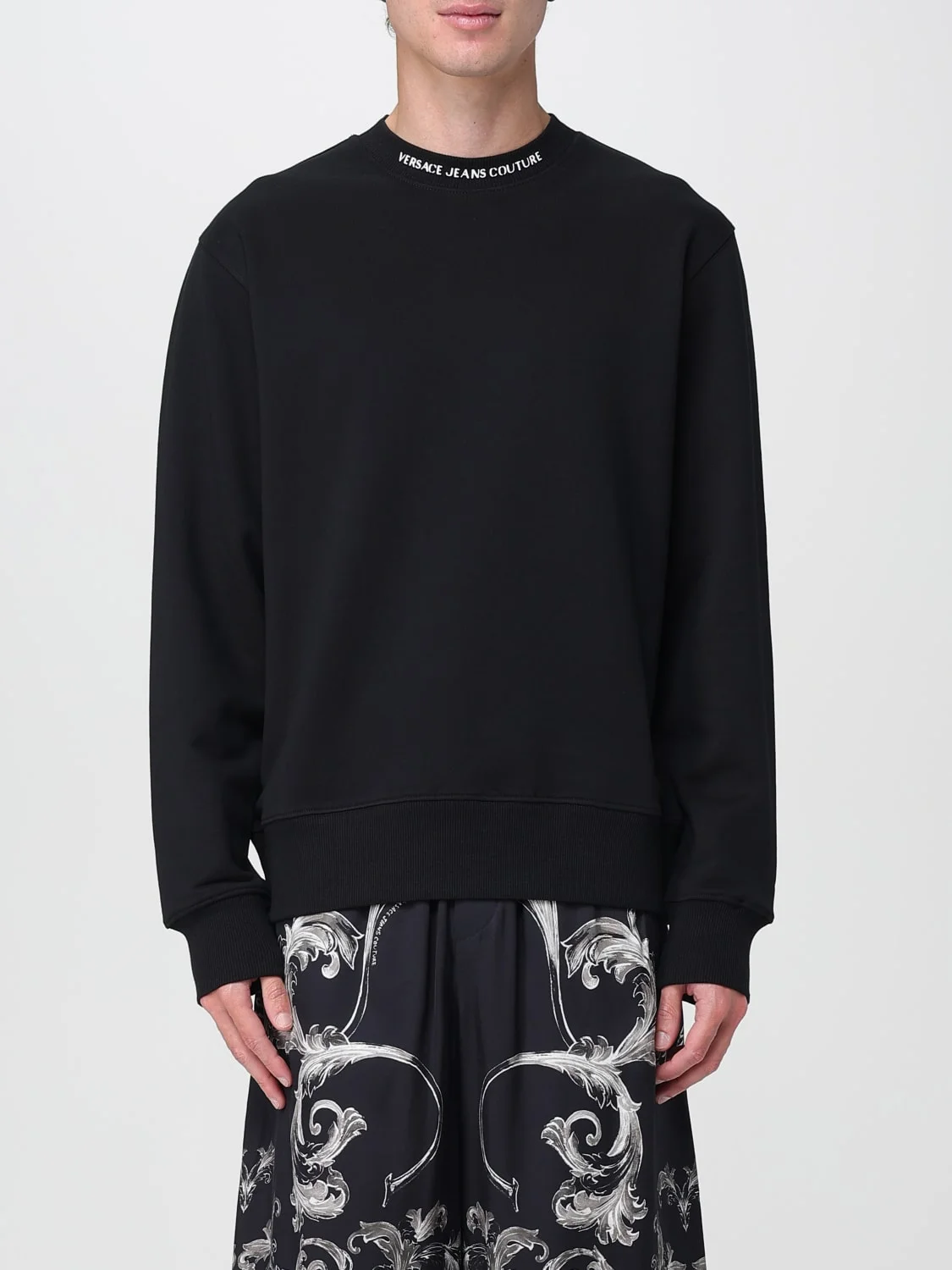 DESCRIPTION - Style: Contemporary - Logo: Contrasting - Model: Crewneck - Neckline: Crewneck - Shoulders: Regular - Sleeves: Long - Cuffs: Stretch - Bottom: With straight hemline - Materials: Cotton - Pattern: Logo DETAILS AND CARE Composition COTTON SIZE AND FIT Sizes not available Size and fit Regular fit Designer code: 78GAIE03CF00E 899 Giglio Code: G94633 Designer: Versace Jeans Couture Collection: Versace Jeans Couture Men Category: Clothing Versace Jeans Couture