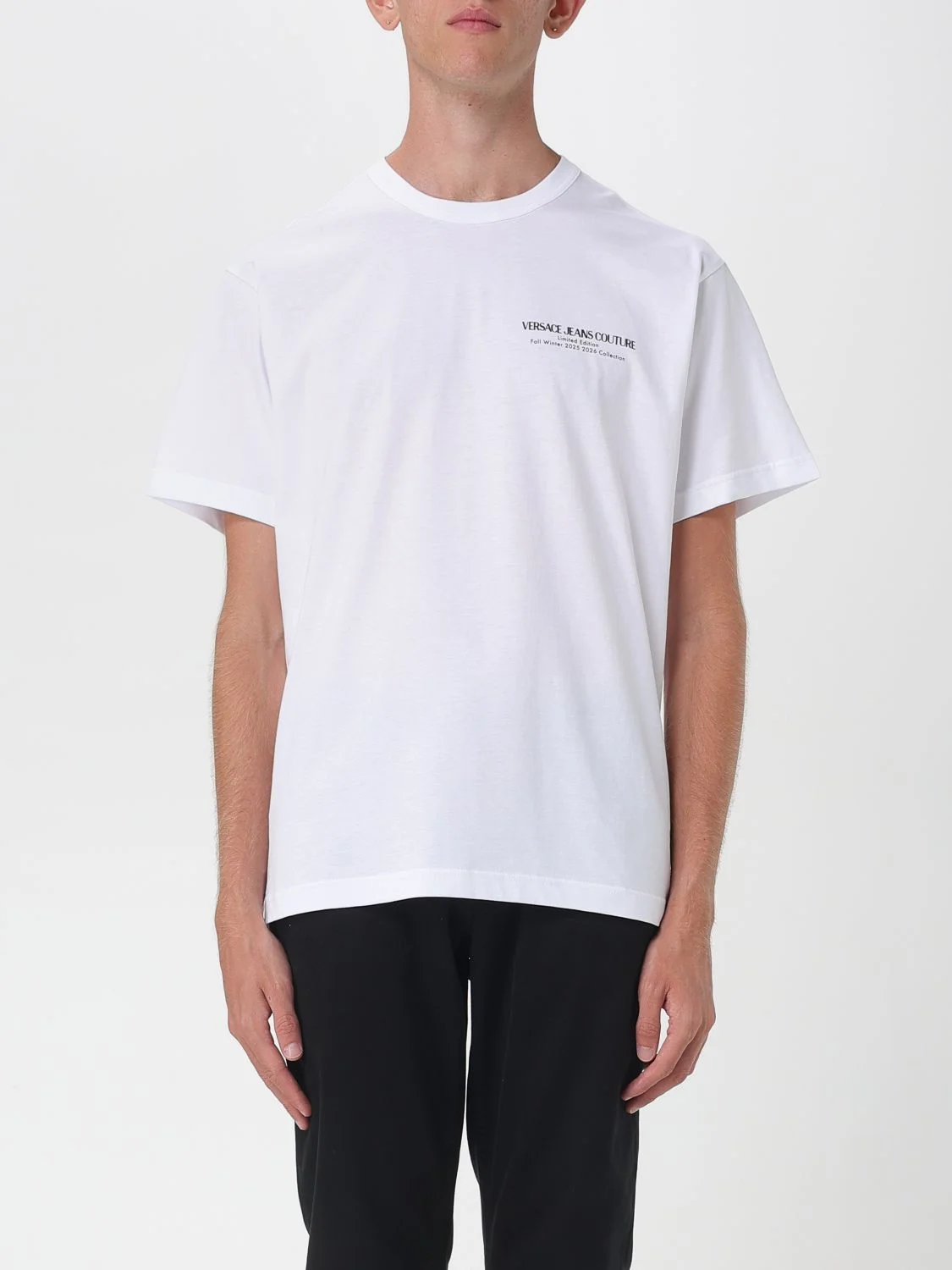 DESCRIPTION - Style: Minimal - Logo: Contrasting - Neckline: Crewneck - Shoulders: Regular - Sleeves: Short - Bottom: With straight hemline - Materials: Cotton - Pattern: Logo DETAILS AND CARE Composition not available SIZE AND FIT Sizes not available Size and fit Regular fit Designer code: 79GAHE10CJ00E 003 Giglio Code: H26325 Designer: Versace Jeans Couture Collection: Versace Jeans Couture Men Category: Clothing Versace Jeans Couture