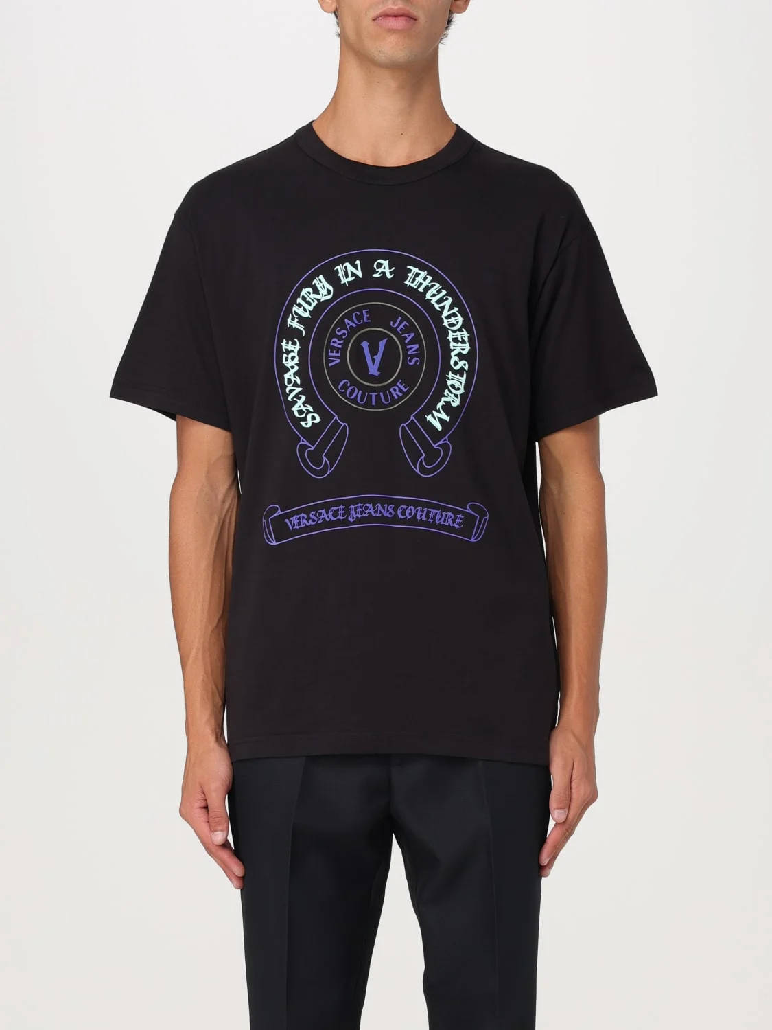 DESCRIPTION - Logo: Contrasting - Neckline: Crewneck - Sleeves: Short - Bottom: With straight hemline - Materials: Cotton - Pattern: Plain-colored DETAILS AND CARE Composition COTO SIZE AND FIT Sizes not available Size and fit Regular fit Designer code: 77GAHG03CJ00G 899 Giglio Code: G01633 Designer: Versace Jeans Couture Collection: Versace Jeans Couture Men Category: Clothing Versace Jeans Couture
