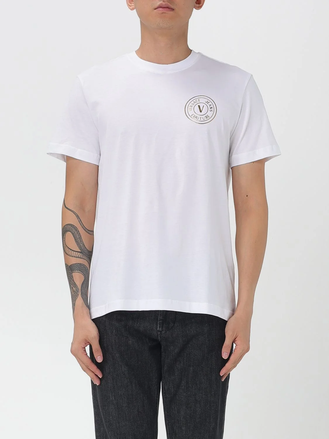 DESCRIPTION - Style: Sporty - Logo: Contrasting - Model: Crewneck - Neckline: Crewneck - Shoulders: Regular - Sleeves: Short - Bottom: With straight hemline - Materials: Cotton - Pattern: Logo DETAILS AND CARE Composition not available SIZE AND FIT Sizes not available Size and fit Slim fit Designer code: 79GAHT00CJ00T G03 Giglio Code: H36437 Designer: Versace Jeans Couture Collection: Versace Jeans Couture Men Category: Clothing Versace Jeans Couture