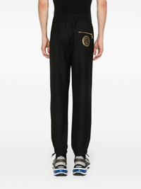 V-Emblem tapered trousers Highlights - Black - Twill weave - Elasticated drawstring waistband - Two side slash pockets - Full-length - Elasticated ankles - Rear zip-fastening pocket - V-emblem logo print to the rear - Tapered leg - Front concealed zip-fly and button fastening Made in Italy Composition Outer: Polyester 70%, Viscose 30% Lining: Cotton 100% SIZE & FIT Model measurements Height 6 ft 2 in(1.87 m) Bust/Chest 36.61 in(93 cm) Hips 35.03 in(89 cm) Waist 27.95 in(71 cm) FittingInformation Designed for a relaxed tapered leg, allowing a comfortable loose fit above the knee with a closer fit towards the calves The elasticated hem at the ankle allows for movement and a comfortable fit Made from a midweight non-stretch fabric This piece fits true to size – take your usual size
