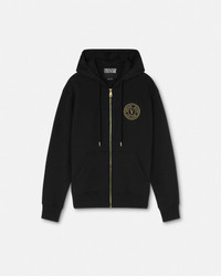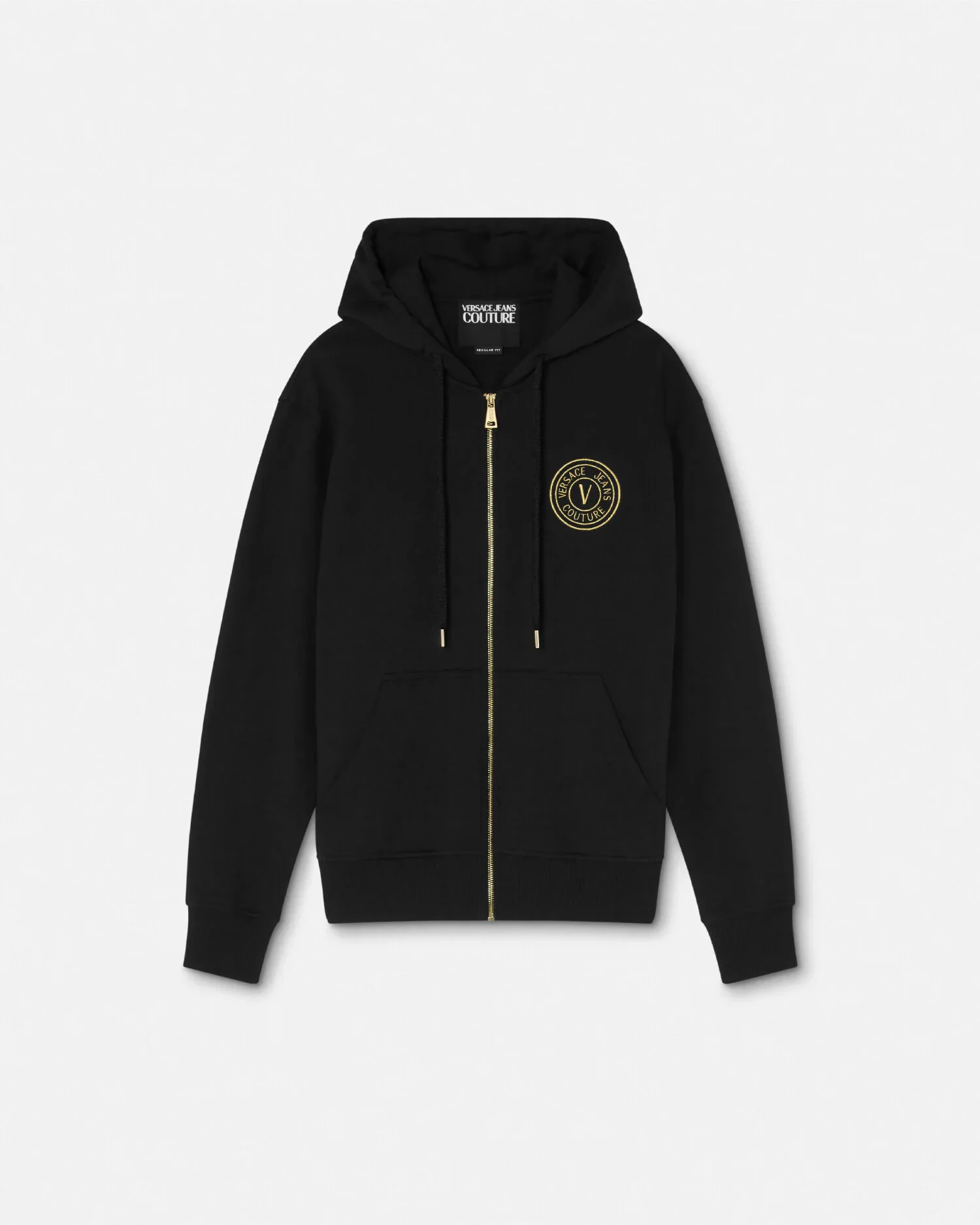 DETAILS With a soft fleece lining, this hooded sweatshirt features a V-Emblem logo print at the chest and has a zipped front. - V-Emblem logo - Long sleeves - Drawstring hood - Elastic hem and cuffs - Outside 1: 100% Cotton - Outside 2: 95% Cotton, 5% Elastane Item: E76GAIT02-ECF01T_EG89 SIZE & FIT - The model is 6'3" tall and wears size M - All sizes fit Italian standards