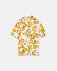 DETAILS A fluid twill short-sleeved shirt feauturing an all-over Watercolor Couture print with relaxed notched collar and chest pocket. - Watercolor Couture print - Short sleeves - Notched collar - Front button closure - Chest patch pocket - Outer composition: 100% Viscose Item: E76GAL2B0-ENS407_EG03 SIZE & FIT - The model is 6'3" tall and wears size 48 - All sizes fit Italian standards