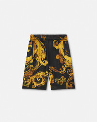 DETAILS These sports-inspired fluid shorts feature an all-over Watercolor Couture print, the Institutional logo on one leg and an elastic waistband. - Watercolor Couture print - Institutional logo - Side pockets - Mesh lining - Elastic waistband - Outer composition: 100% Viscose - Lining 1: 100% Polyester - Lining 2: 100% Cotton Item: E76GAD17W-ENS411_EG89 SIZE & FIT - The model is 6'3" tall and wears size 48 - All sizes fit Italian standards