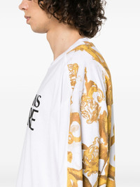 logo-print cotton T-shirt Highlights - White/amber yellow - Cotton - Jersey texture - Panelled design - Ribbed crew neck - Institutional logo print to the front - Short sleeves - Watercolour couture print to the rear - Straight hem Imported Composition Cotton 100% SIZE & FIT Model measurements Height 6 ft 2 in(1.87 m) Bust/Chest 36.61 in(93 cm) Hips 35.03 in(89 cm) Waist 27.95 in(71 cm) FittingInformation Designed for an oversized fit, offering additional room throughout Made from a midweight non-stretch fabric, this piece offers minimal elasticity when worn This piece fits true to size – take your usual size