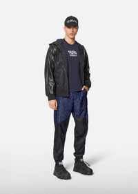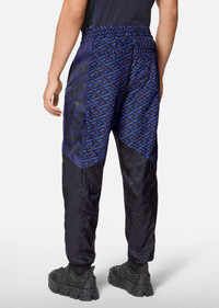 An off-duty favorite, these relaxed joggers feature the new La Greca print. DETAILS & CARE - La Greca print - Elasticized waistband - Side slant pockets - Elasticized ankle cuffs - Outer fabric 1: 100% Nylon - Outer fabric 2: 100% Polyester - Lining: 100% Cotton - Machine wash cold (Delicate) - Do not bleach - Do not tumble dry - Drip dry - Cool iron on reverse with damp cloth on top - Do not dry clean - Wash separately and inside out SIZE & FIT - All sizes fit Italian standards
