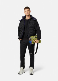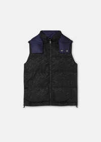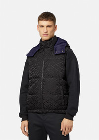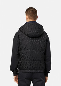 A hooded sleeveless puffer jacket featuring a front zip closure and tonal La Greca print details. DETAILS & CARE - Greca signature print - Hood - Zip down front - Outer fabric: 100% Polyamide - Lining: 100% Cotton - Inner: 100% Polyester - Lining: 100% Polyamide - Padding: 100% Polyester - Cool iron on reverse with damp cloth on top - Delicate dry clean - Do not bleach - Do not tumble dry - Machine wash cold (delicate) - Protect accessory before washing - Wash inside out SIZE & FIT - All sizes fit Italian standards - The Model is 1,89 m and wears a size 48