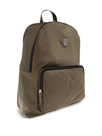 La Medusa backpack Highlights - Olive green - Medusa head embellishment - Top handle - Zip fastening - Greca motif straps - Adjustable shoulder-straps - Zipped front-pocket Made in Italy Composition Fabric 100% SIZE & FIT Measurement HEIGHT 16.53 in(42 cm) WIDTH 11.81 in(30 cm)