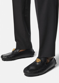 DETAILS A slip-on design, these leather driving shoes are accented by the La Medusa emblem on the uppers, and are set on rubber soles. - La Medusa hardware - Slip on - Outer composition: 100% Calf leather - Lining: 100% Calf leather - Sole: 100% Rubber Item: 1003701-1A00693_1B00V SIZE & FIT - All sizes fit Italian standards - Fits true to size, take your normal size