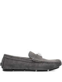 La Medusa-embellished loafers Highlights - Grey - Suede texture - Moccasin toe - Flat sole - Decorative stitching - Medusa head embellishment Made in Italy Composition Outer: Calf Leather 100% Lining: Goat Skin 100%, Calf Leather 100% Sole: Rubber 100%