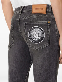 La Medusa embroidery-detail jeans Highlights - Dark grey - Five-pocket - Straight leg Made in Italy Composition Calf Leather 100%, Cotton 99%, Polyester 1% Washing instructions Read Manufacturer Guidelines