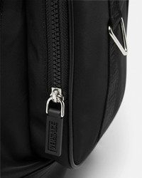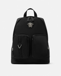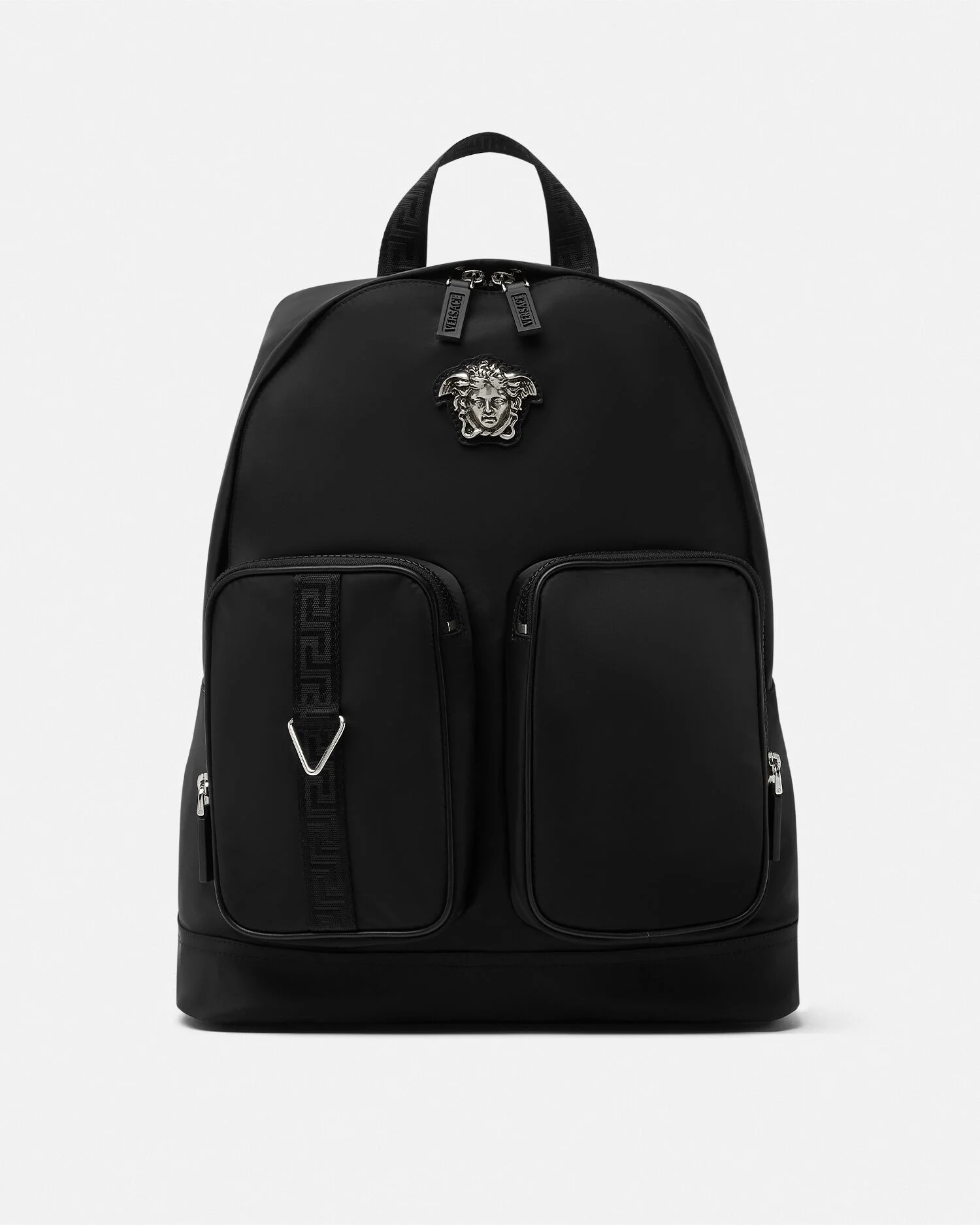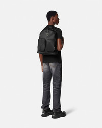 A nylon backpack featuring the iconic La Medusa hardware and adjustable jacquard Greca shoulder straps.The style has a mesh padded back panel and an interior padded laptop compartment.It's detailed with V-ring hardware, perfect for personalizing with Versace keychains and charms. - La Medusa hardware - Greca motif - V-ring hardware - Top handle - Top two-way zip closure - Front zipped pockets - Interior computer and iPad slip pockets - Adjustable shoulder straps - Outer composition: 100% Nylon - Lining: 100% Nylon - Trim: 100% Nylon Size & Fit - L13.4 x W7.5 x H15.7" / L34 x W19 x H40 cm - Handle drop: L3.5" / L9 cm Item: 1020002-1A14493_DTU_UNICA_1B00P__