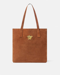 This tote bag is crafted entirely in suede and features a central three-dimensional La Medusa hardware. - La Medusa hardware - Versace logo embossing - Top handles - Open top - Outer composition: 100% Calf leather - Trim: 100% Calf leather Size & Fit - L14.2 x W2.4 x H13.4" / L36 x W6 x H34 cm - Handle drop: L10.2" / L26 cm Item: 1020004-1A16193_DTU_UNICA_1N47V__