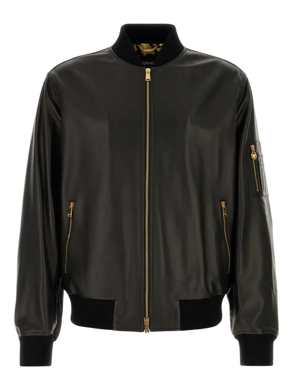 leather bomber jacket Highlights - Black - Ribbed trims - Zip fastening - Zip pockets - Gold-tone hardware - Long sleeves Made in Italy Composition Outer: Lambskin 100% Lining: Polyester 100%, Cupro 100%, Cotton 100% Washing instructions Read Manufacturer Guidelines