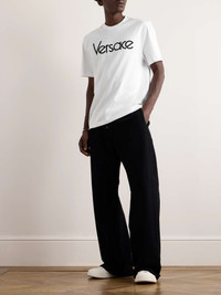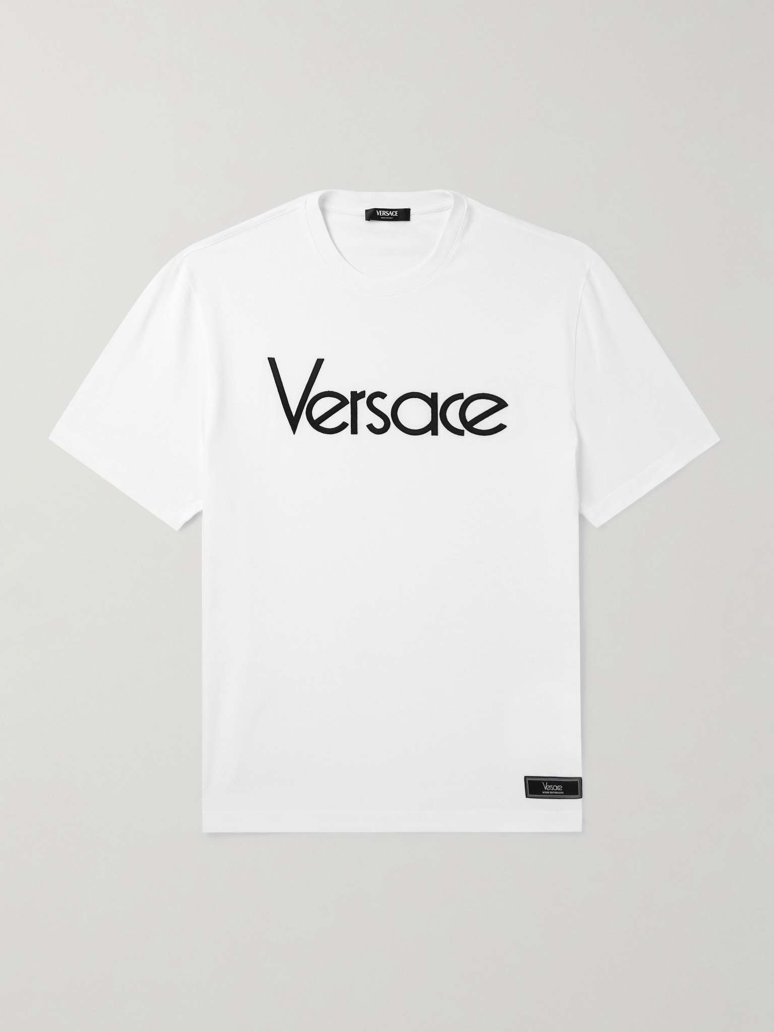 Versace honours its storied past with this T-shirt. Embroidered with a logo from 1978, it's cut from smooth cotton-jersey for a slightly loose fit and appliquéd with a tailoring-inspired tab at the hem. Size & Fit - Fits true to size. Take your normal size - Designed for a slightly loose fit - Lightweight, stretchy fabric - Model is shown wearing a S - Model measures: chest 36"/ 92cm, height 6'2"/ 188cm Details & Care - White cotton-jersey - 100% cotton - Machine wash