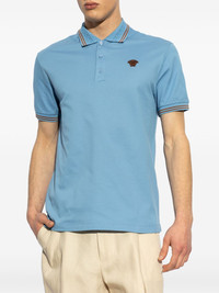 Medusa-embroidered polo shirt Highlights - Light blue - Embroidered emblem - Collared neck - Button placket - Striped details - Short sleeves - Classic fit Imported Composition Cotton 100% SIZE & FIT FittingInformation Designed for a regular fit, this polo shirt offers a comfortable loose fit throughout the body Made from a midweight non-stretch fabric, this piece offers minimal elasticity when worn Washing instructions Read Manufacturer Guidelines