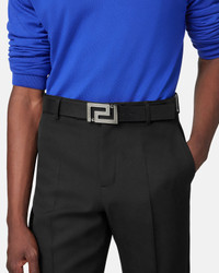 This reversible calf leather belt features two different solid colors and a Greca reversible buckle with a Versace Logo engraving. - Greca hardware - Versace Logo engraving - Twist and lock closure - Outer composition: 100% Calf leather Size & Fit - Height: 1.4" / 3.5 cm Item: 1022671-DVTP1_2B52E