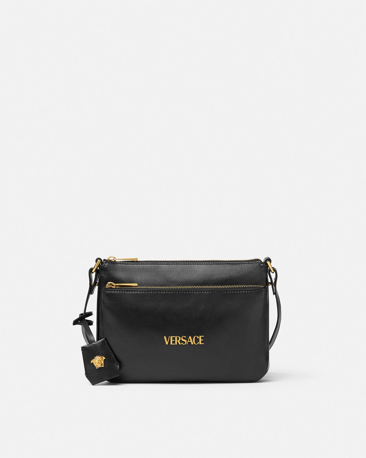 DETAILS Item: - Medusa hardware - Versace Logo hardware - Top zip closure - Front zipped pocket - Adjustable and detachable shoulder strap - Outer composition: 100% Lambskin - Lining: 100% Polyester Item: 1018303-1A13171_DTU_UNICA_1B00V__ SIZE & FIT - L9.3" x W0.8" x H5.3" / L23.5 x W2 x H13.5 cm - Shoulder strap: L38.2"-40.5"-43.3" / L97-103-110 cm - Shoulder strap drop: L20.9"-21.7"-22.4" / L53-55-57 - Approximate weight: 3.5oz / 0.1 kg