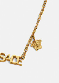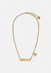 A very Versace touch to any look, this classic necklace features logo lettering and a subtle Medusa charm. All Versace Jewelry items are lead and nickel free. All materials are hypoallergenic. DETAILS & CARE - Logo - Medusa charm - Lobster clasp fastening - Metal: Brass - Finish: Versace gold - Please note water or perfume may damage the item SIZE & FIT - Length: 4,5 + 5 cm