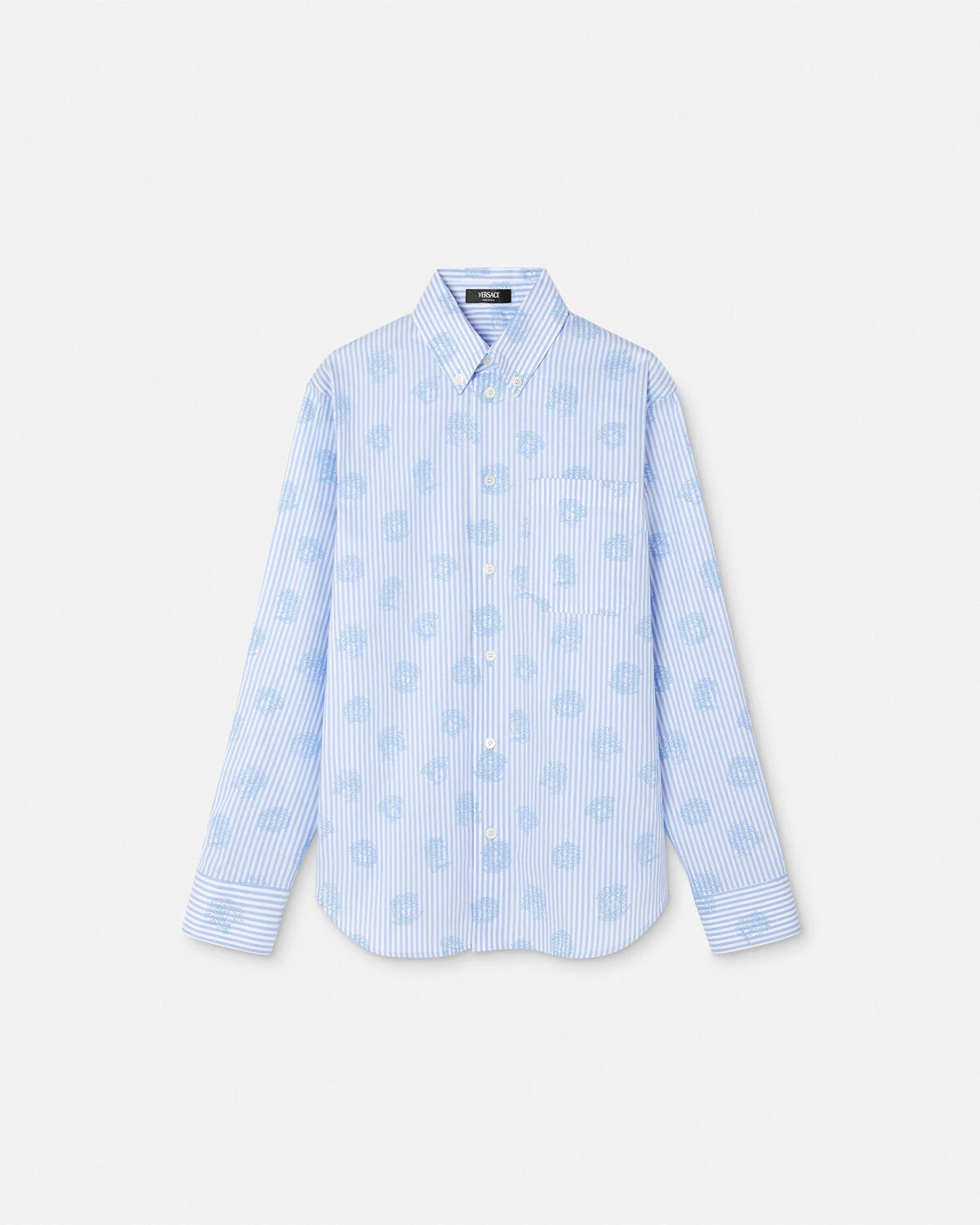 DETAILS This striped longsleeved cotton Oxford shirt features a buttondown collar and repeat Medusa print - Medusa print - Long sleeves - Pointed collar - Front button closure - Buttoned cuffs - Outer composition: 100% Cotton Item: 1016210-1A11390_5UB80 SIZE & FIT - The model is 5'8" tall and wears size 38 IT