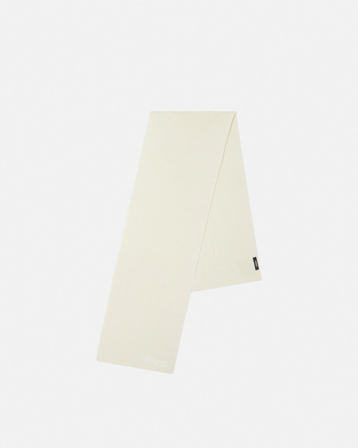 DETAILS This scarf is crafted from ribbed-knit wool and has a thread-embroidered re-edition of the Versace logo from 1978. - 1978 Re-Edition Logo embroidery - Outer composition: 100% Wool - Embroidery: 100% Viscose - Trim: 100% Polyester Item: 1014305-1A10572_I01_UNIC_1W470__ SIZE & FIT - L72.4 x H12.6" / L184 x H32 cm