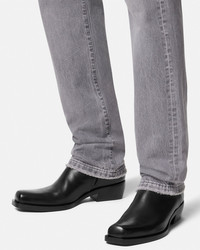 DETAILS A new city boot in a Western-style shape, featuring a slanted block heel and a squared toe, crafted from smooth leather. - Square toe - Block heel - Side zip closure - Outer composition: 100% Calf leather - Lining: 100% Calf leather - Sole: 100% Calf leather Item: 1016157-1A11084_1B00E SIZE & FIT - The shoe weighs approximately 24 oz for the model size 44 IT - Heel: 2" - Regular footbed - Fits true to size, take your normal size