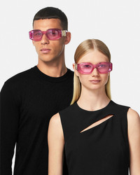 DETAILS Inspired by '90s hip-hop culture, these sunglasses feature acetate frames and wide Medusa-embellished temples. The rectangular shape is finished with tonal tinted lenses. - Medusa Biggie hardware - Frame color: Transparent pink - Temple color: Transparent pink - Lens color: Transparent pink - Frame: 100% Nylon - Temple: 100% Nylon Item: O4425U-O54218454_RTU_TU_ONUL__ SIZE & FIT - Lens width: 53 mm - Bridge: 18 mm - Temple: 145 mm
