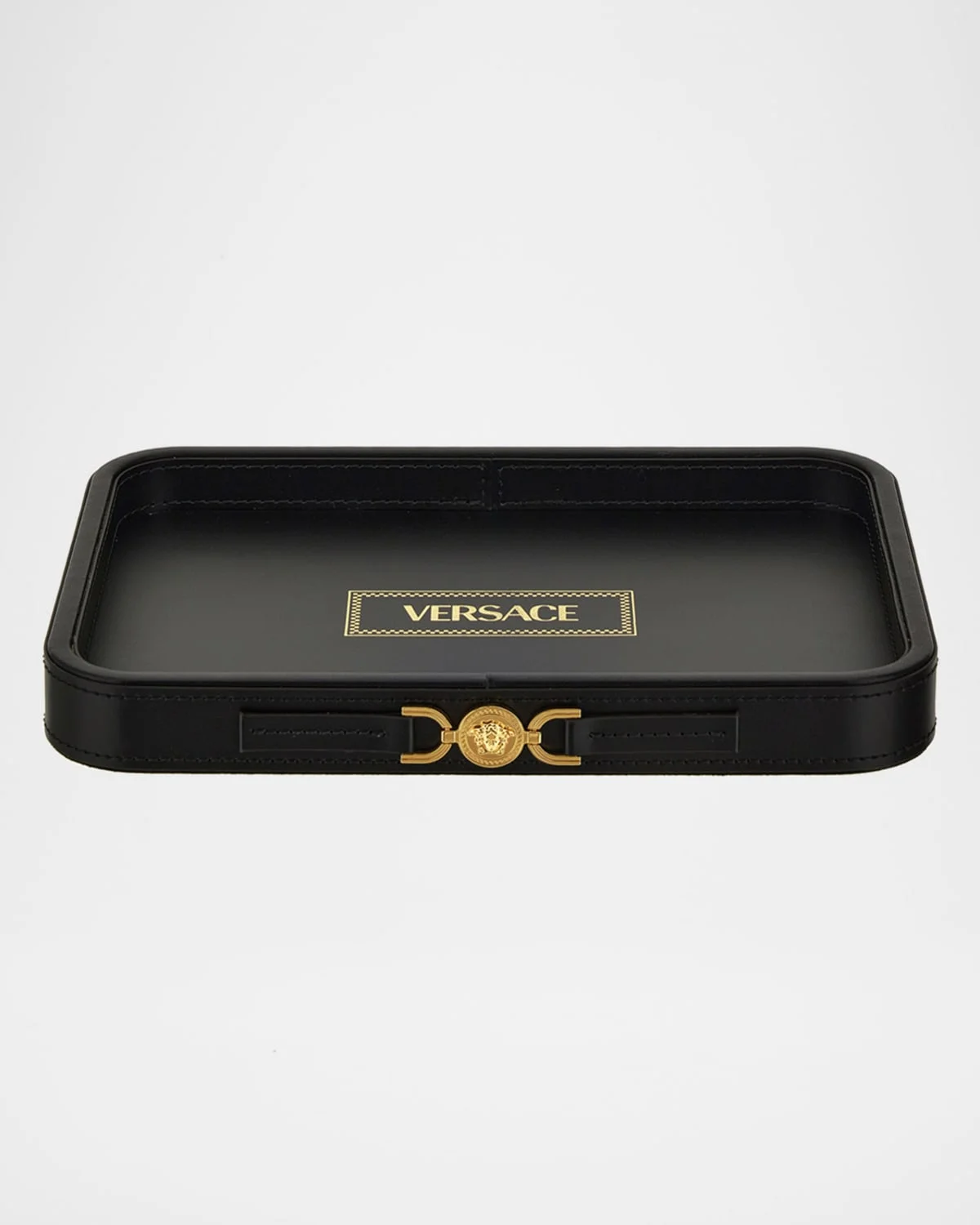 Accented by Medusa '95 hardware, an iconic House code that debuted in 1995, this leatherwrapped tray is perfect for keeping your small items organized in one place. Handcrafted of wood, metal, and leather Approx. 9.4"L x 6.8"W Spot clean Made in Italy