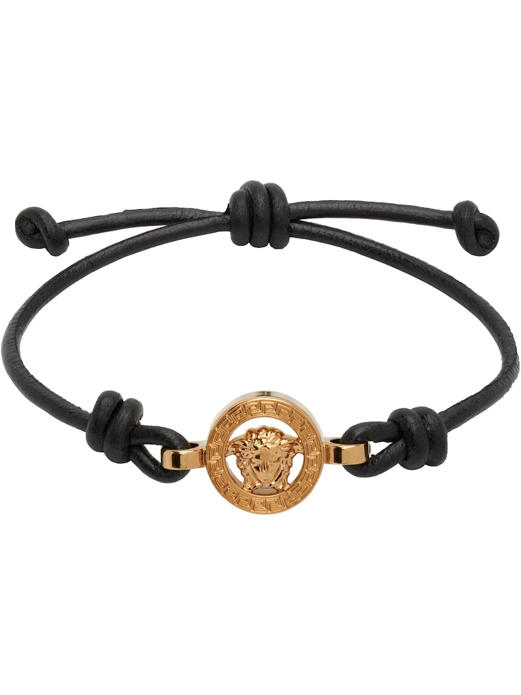 Buffed lambskin bracelet in black. · Medusa hardware at face · Pull-through fastening · Gold-tone hardware · D3" Supplier color: Black/Gold Lambskin, metal. Made in Italy 261404M142002