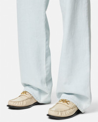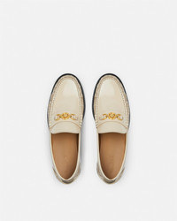 DETAILS These loafers are crafted in patent leather and feature Medusa '95 hardware at the penny straps. - Medusa '95 hardware - Moccasin construction - Penny strap - Round toe - Outer composition: 100% Calf leather - Lining: 100% Calf leather - Sole: 100% Calf leather Item: 1013592-1A10539_1KD7V SIZE & FIT - The shoe weighs approximately 14.1 oz for the model size 44 - Fits true to size, take your normal size