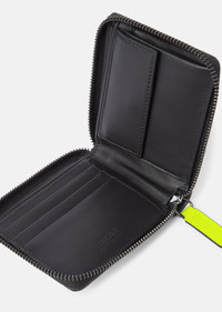This bifold wallet is crafted in a smooth rubber finish and features a tonal Medusa Biggie hardware. The interior is complete with a note compartment, coin pouch, and card slots. DETAILS & CARE - Medusa Biggie hardware - Zip-around closure - Note compartment - Coin pouch - Three card slots - Interior slip pocket - Outer composition: 100% Polyester - Lining: 100% Nylon - Trim: 100% Calf leather SIZE & FIT - L12 x W3,5 x H10 cm