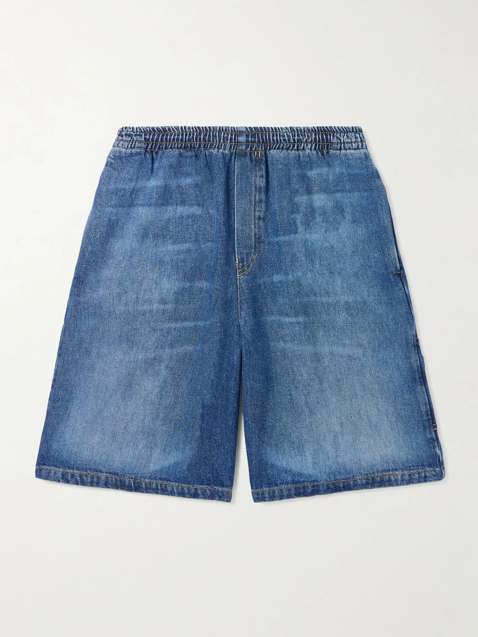 Straight-Leg Horsebit-Embellished Denim Shorts Blue