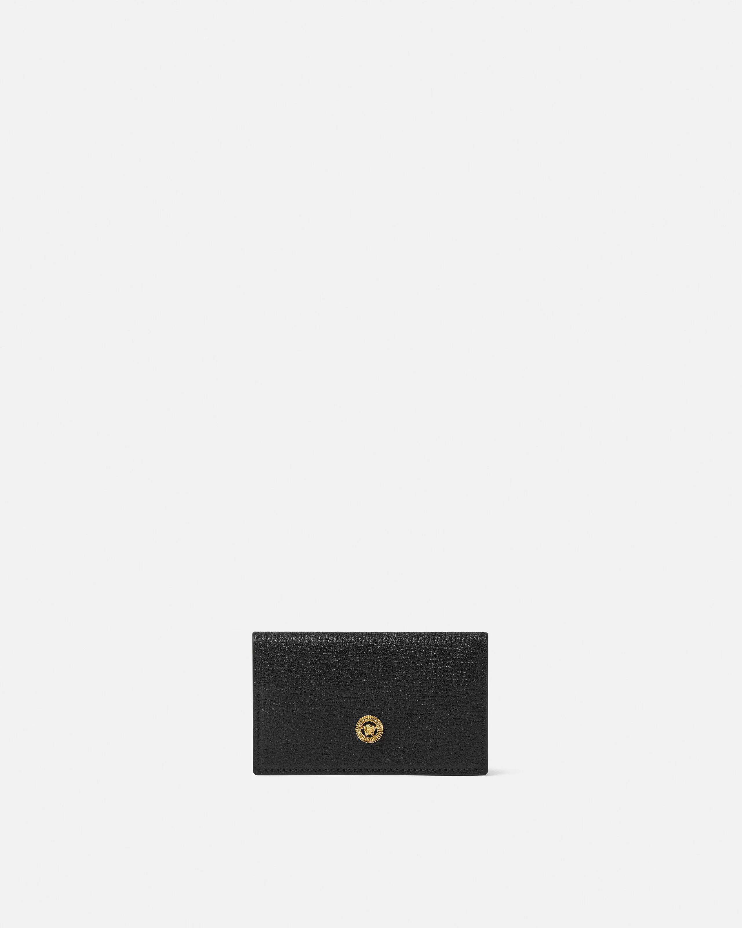 This card holder is crafted from grained leather and is accented by Medusa Biggie hardware at the front. The accessory features interior card slots and a spacious compartment. - Medusa Biggie hardware - Flap closure - 1 interior card slot - 1 interior slip pocket - 1 interior compartment - Outer composition: 100% Goat leather - Lining: 100% Polyester - Trim: 100% Calf leather Size & Fit - L4.7 x W0.8 x H2.8" / L12 x W2 x H7 cm Item: 1021877-1A10544_DTU_UNICA_1B00V__