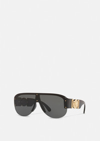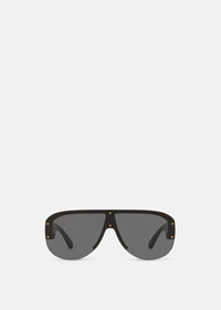 DETAILS The aviator shape refreshes the Medusa Biggie line, with tinted lenses and recognizable hardware at the temples. - Medusa Biggie hardware - Temple color: Black - Lens color: Dark grey - Front material: Nylon - Temples: Nylon - Made in Italy Item: O4391-OGB18748_RTU_TU_ONUL__ SIZE & FIT - Size: 1.7" - Temple: 5.5"