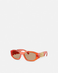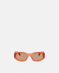 DETAILS These Medusa Biggie sunglasses feature rectangular transparent frames and are accented by the Medusa Biggie emblem at the temples - Medusa Biggie hardware - Frame color: Transparent papaya - Temple color: Opaline papaya - Lens color: Light brown - Frame: Nylon - Temple: Nylon Item: O4361-O55276353_ONUL SIZE & FIT - Lens: W2.1" x H1.4" / W53 x H36.2 mm - Bridge: 0.7" / 18 mm - Temple: 5.5" / 140 mm