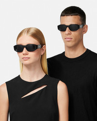 DETAILS These Medusa Biggie sunglasses feature rectangular frames and are accented by the Medusa Biggie emblem at the temples. - Medusa Biggie hardware - Frame color: Black - Temple color: Black - Lens color: Dark grey - Frame: 100% Nylon - Temple: 100% Nylon Item: O4361-O54228753_RTU_TU_ONUL__ SIZE & FIT - Lens width: 53 mm - Bridge: 18 mm - Temple: 140 mm