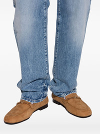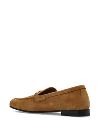 Medusa chain-detail leather loafers Highlights - Brown - Grained texture - Chain embellishment - Gold-tone hardware - Almond toe - Block heel Made in Italy Composition Lining: Calf Leather 100% Outer: Calf Suede 100% Sole: Calf Leather 100%