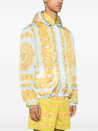 Medusa Chains-print jacket Highlights - Light blue - Front zip fastening - Drawstring hood - Two press-stud fastening side pockets - Elasticated cuffs Made in Italy Composition Lining: Polyester 100% Outer: Polyamide 100% SIZE & FIT Model measurements Height 6 ft 2 in(1.87 m) Bust/Chest 38.18 in(97 cm) Hips 36.61 in(93 cm) Waist 29.13 in(74 cm) FittingInformation Designed to be unstructured, offering a loose fit throughout The internal drawstring at the hem allows for fitted preferences Made from a lightweight non-stretch fabric