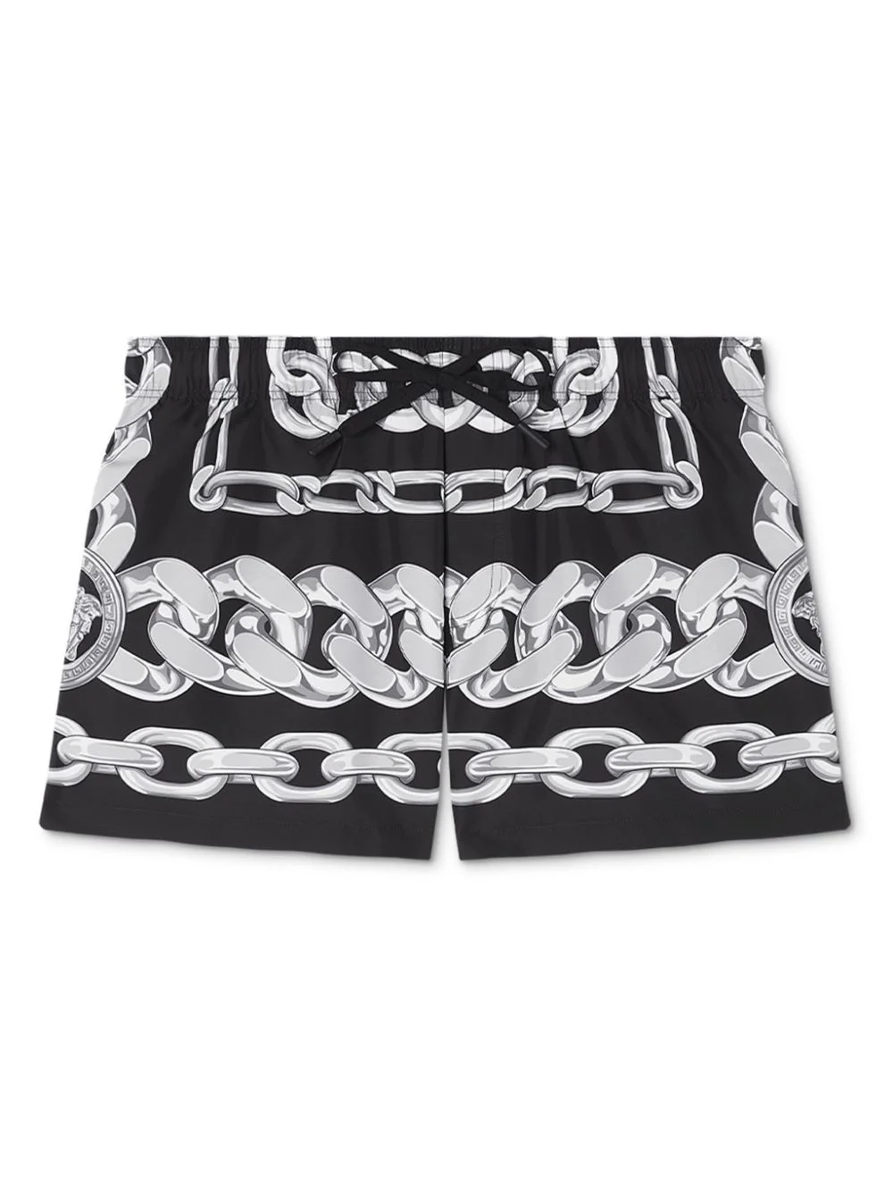 Medusa Chains swim shorts Highlights - Black - Elasticated drawstring waistband - Rear zip-fastening pocket - Be mindful to try on swimwear over your own garments. Made in Italy Composition Lining: Polyester 100%, Nylon 94%, Elastane 6% Outer: Polyester 100%