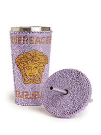 Medusa crystal-embellished travel cup Highlights - Lilac purple - Aluminium - Crystal embellishment - Medusa head motif - Signature la greca print - Screw-top lid - Reusable straw Made in Italy Composition Aluminium 100% SIZE & FIT Measurement HEIGHT 8.46 in(21.5 cm)