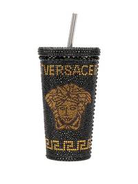 Medusa crystal-embellished travel cup Versace's bedazzled travel cup is detailed with the brand's signature Medusa head and Greca logo motifs. Embellished with light-enhancing crystal embellishments, this decorative accessory is a testament to the brand's glamorous appeal. Highlights - Black - Metal - Crystal embellishment - Medusa head motif - Twist-lock fastening - Metal straw Made in Italy Composition Aluminium 100% SIZE & FIT Measurement HEIGHT 9.84 in(25 cm) WIDTH 3.93 in(10 cm)