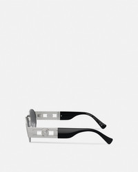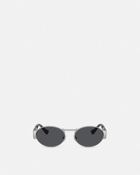 DETAILS Oval frame sunglasses defined by geometric lines at the nose bridge and temples, accented by a Medusa hardware at the side. - Medusa hardware - Frame color: Silver-tone - Temple color: Silver-tone - Lens color: Dark grey - Frame: Metal - Temple: Metal Item: O2264-O15138756_RTU_TU_ONUL__ SIZE & FIT - Eye size: 2.2"