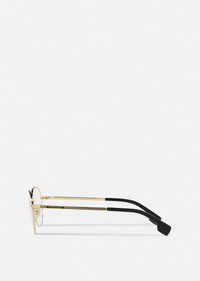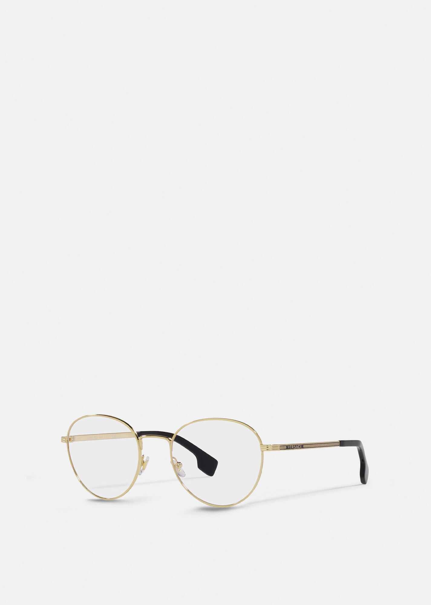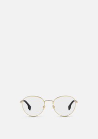 These round optical glasses have thin metal frames, detailed with an engraved logo and Greca pattern at the temples. DETAILS & CARE - Round lens - Frame colour: Gold - Temple colour: Gold - Details: Greca detail and brand logo engraved on the temples - Lens colour: Transparent - Frame: Metal - Temple: Metal - Made in Italy SIZE & FIT - Eye size: 51 - Bridge: 20 - Temple: 145