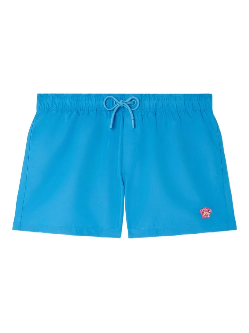 Medusa-embroidered swim shorts Highlights - Blue - Elasticated drawstring waistband - Two side inset pockets - Rear zip-fastening pocket - Medusa head motif - Be mindful to try on swimwear over your own garments. Made in Italy Composition Outer: Polyester 100% Lining: Nylon 94%, Elastane 6%