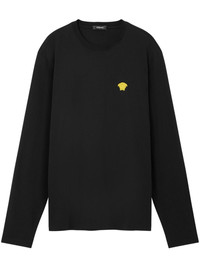 Medusa-embroidered T-shirt Highlights - Black - Jersey texture - Medusa head motif - Embroidered logo at the chest - Crew neck - Long sleeves - Straight hem Imported Composition Outer: Cotton 100%