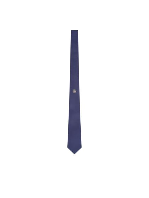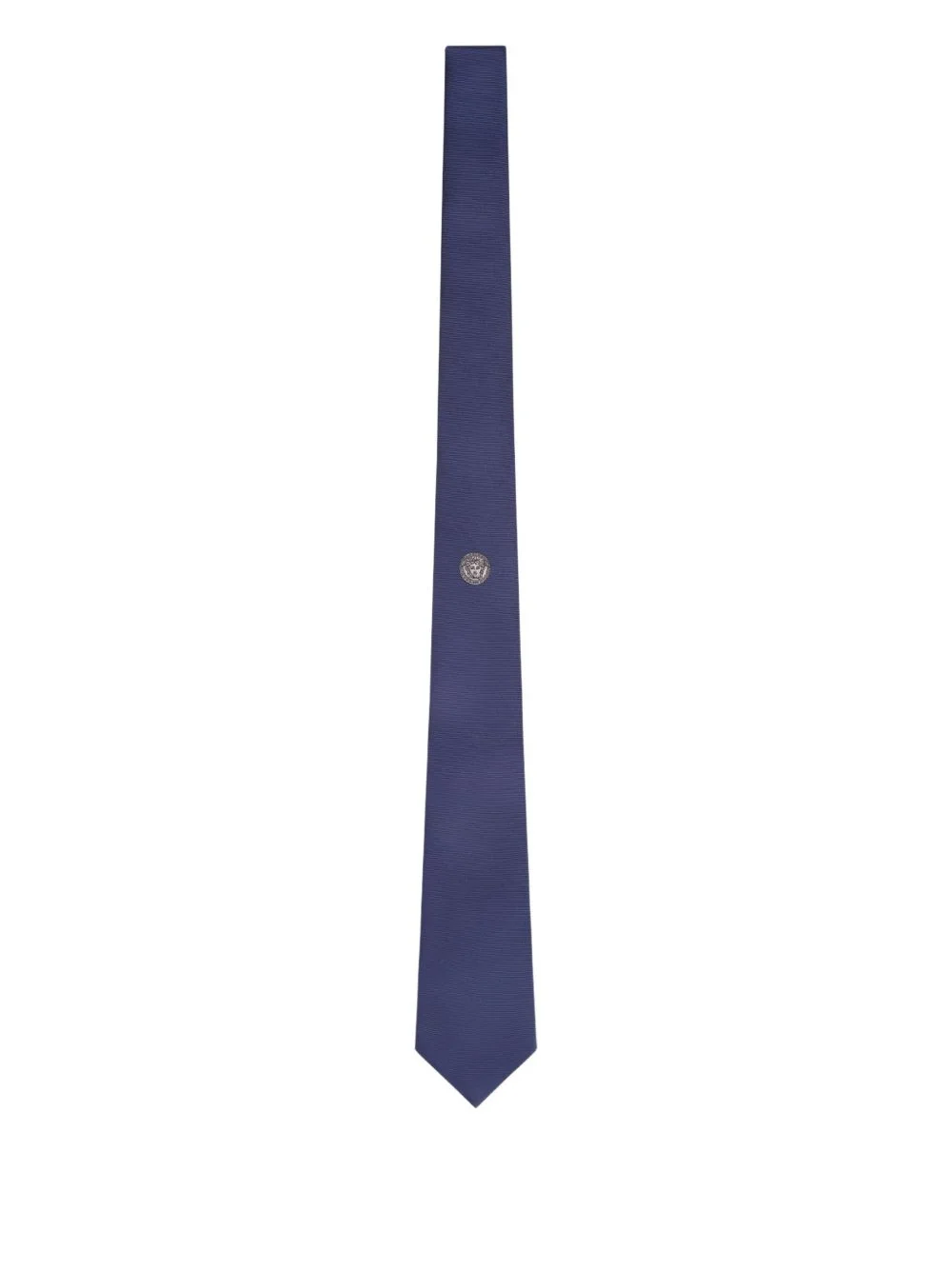 Medusa-embroidered tie Highlights - Navy blue - Embroidered medusa logo - Narrow width - Textured finish - Pointed tip Made in Italy Composition Outer: Silk 100% Lining: Silk 100%