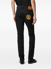Medusa-embroidery jeans Highlights - Black - Gold-tone hardware - Back pocket embroidery - Five pockets - Belt loops Made in Italy Composition Polyester 100%, Calf Leather 100%, Cotton 98%, Spandex/Elastane 2% Washing instructions Read Manufacturer Guidelines