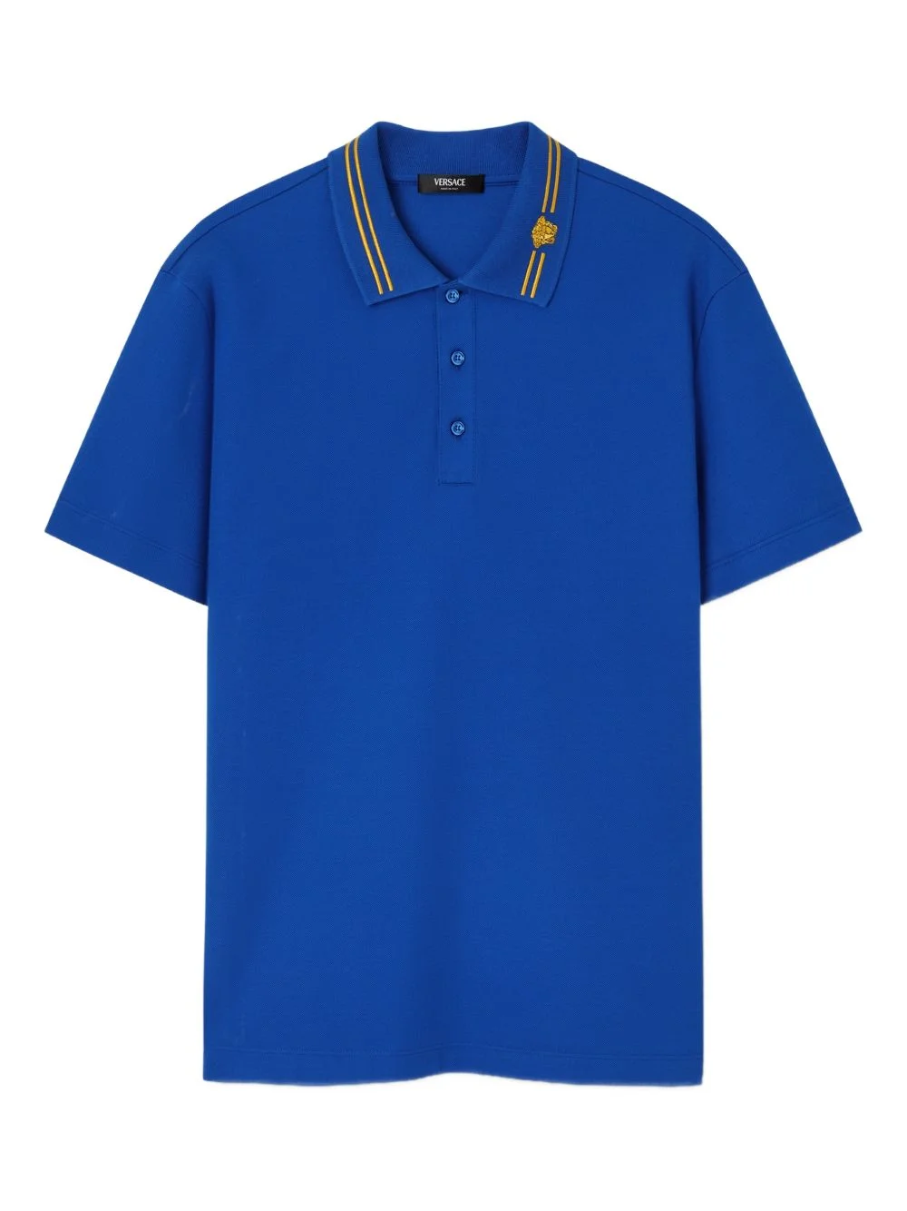 Medusa-embroidery polo shirt Highlights - Blue - Embroidered medusa - Polo collar - Short sleeve - Button placket Imported Composition Cotton 100% Washing instructions Read Manufacturer Guidelines